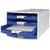 Suport plastic cu 4 sertare pt. documente, HAN Impuls 2.0 (open) - gri deschis - sertare albastre