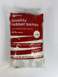 Elastice pentru bani, 60% cauciuc, 1kg/punga, D120, grosime 1.5mm x 1.5mm, Optima - albe