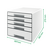 Cabinet cu sertare LEITZ WOW, 5 sertare, PS, reciclabil, A4, cu tavita organizare, alb-rosu