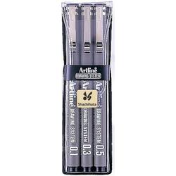 Liner pentru desen tehnic ARTLINE, varf fetru (0.1/0.3/0.5mm), 3 buc/set - negru