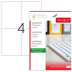 Etichete albe autoadezive, repozitionabile, 4/A4, 105x148.5mm, 25coli/top, TANEX-colturi drepte
