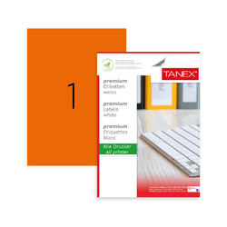 Etichete color autoadezive, 1/A4, 210 x 297mm, 25 coli/top, TANEX - orange fluorescent