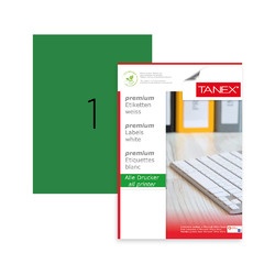 Etichete color autoadezive, 1/A4, 210 x 297mm, 25 coli/top, TANEX - verde fluorescent