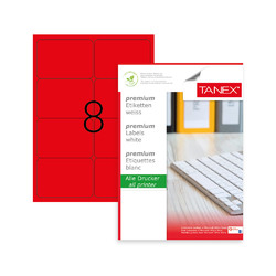 Etichete color autoadezive, 8/A4, 99.1 x 67.7mm, 25 coli/top, TANEX - rosu fluorescent
