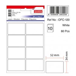 Etichete autoadezive albe, 34 x 52 mm, 80 buc/set, TANEX