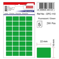 Etichete autoadezive color, 16 x 22 mm, 160 buc/set, TANEX - verde fluorescent