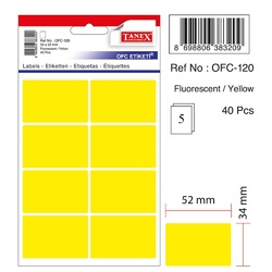 Etichete autoadezive color, 34 x 52 mm, 40 buc/set, TANEX - galben fluorescent