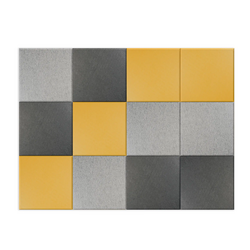 - Acoperire acustica pentru perete formata din 12 placi de felt cu dimensiunea de 30 x 30 centimetri. Materialul este fabricat din sticle de PET reciclate si absoarbe sunetele enervante si ecourile neplacute. Acest set contine 4 placi galbene, 4 placi gri deschis si 4 placi gri inchis. Puteti crea diverse modele utilizand unul sau mai multe seturi.