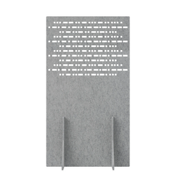 - Un perete de separare acustic, de culoare gri deschisa, universal, realizat din felt de 18 mm grosime. Feltul absoarbe sunetele enervante si ecourile neplacute. Peretele de separare este autonom, avand picioare din acelasi material. Materialul din felt este sustenabil, fiind fabricat din sticle de PET reciclate.