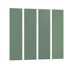 - Acoperire acustica pentru perete constand din 4 benzi verde deschis de felt de marimea 30 x 120 cm. Materialul este fabricat din sticle de PET reciclate si absoarbe sunetele enervante si ecourile neplacute. Poate fi fixat fie cu separatorul furnizat, fie strans unul langa altul.