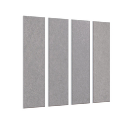 - Acoperire acustica pentru perete constand din 4 benzi gri deschis de felt de marimea 30 x 120 cm. Materialul este fabricat din sticle de PET reciclate si absoarbe sunetele enervante si ecourile neplacute. Poate fi fixat fie cu separatorul furnizat, fie strans unul langa altul.