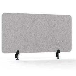 - Un perete de separare acustic, de culoare gri deschisa, universala. Cele doua cleme negre fixeaza panoul in siguranta si pot fi utilizate pentru birouri cu grosimea de 15 pana la 34 mm. Clemele sunt incluse. Panoul de 18 mm grosime absoarbe sunetele enervante si ecourile neplacute. Materialul din felt este sustenabil, fiind fabricat din sticle de PET reciclate.