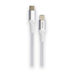 Cablu date GRIXX - USB-C to Lightning MFI, impletit, lungime 1m - alb
