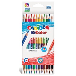Creioane colorate CARIOCA BiColor, triunghiulare, bicolore, 12 culori/cutie