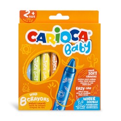 Creioane cerate, rotunde, solubile in apa, 8 culori/cutie, CARIOCA Baby Wild Crayons 2+