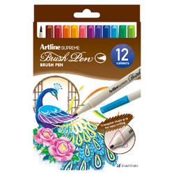 Carioca corp triunghiular, ARTLINE Supreme, varf flexibil (tip pensula), 12 culori/cutie