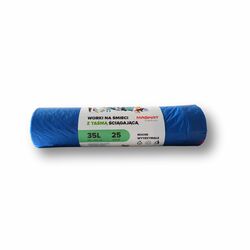 Saci plastic reciclat, standard, 35L, cu snur, 50x60cm, 25 microni, 25buc/rola, RESACO - albastri *