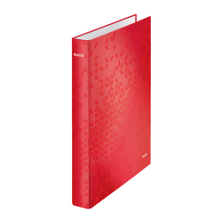Caiet mecanic LEITZ WOW, carton laminat, partial reciclat, FSC, A4, mecanism 2DR, inel 25mm, rosu