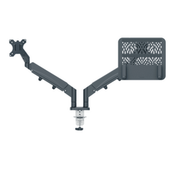 Suport pentru monitor LEITZ Ergo, 2 brate, cu fixare pe birou, suport pentru laptop inclus, gri-