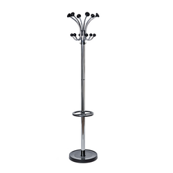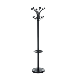 GroupDescription: #- Cuier solid de otel pentru haine, in picioare, pentru uz intens #- Bine gandit: suporturile pentru haine cu carlige de pe ambele parti distribuie incarcatura si permit accesul usor #- Extrem de stabil: baza grea acoperita cu plastic si protectii pentru podea din fetru #- Inteligent: 4 carlige suplimentare de-a lungul coloanei pentru articole usoare sau accesorii, inca 4 pe suportul pentru umbrele pentru umbrele de buzunar #- Sigur: varfurile din plastic rotunjite sunt prietenoase cu hainele #- Fixat cu suruburi: varfurile din plastic sunt bine fixate si nu se vor clatina #- Se potriveste discret in orice spatiu #- De la profesionisti: peste 100 de ani de experienta in prelucrarea metalelor #- Post Ø 5 cm, negru lucios #- Varfuri pentru carlige de haine din plastic realizate din ABS rezistent la rupere #- Parte superioara rotativa pentru acces usor din orice parte #- Cu suport pentru umbrele #- Asamblare rapida si usoara #- Reciclabil: dezasamblati si reciclati