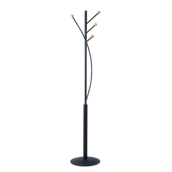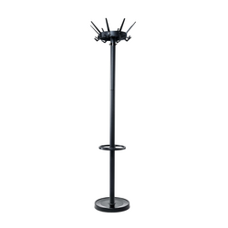 GroupDescription: #- Cuier solid de otel pentru haine, in picioare, pentru uz intens #- Bine gandit: suporturile pentru haine cu carlige de pe ambele parti distribuie incarcatura si permit accesul usor #- Extrem de stabil: baza grea acoperita cu plastic si protectii pentru podea din fetru #- Inteligent: 4 carlige suplimentare de-a lungul coloanei pentru articole usoare sau accesorii, inca 4 pe suportul pentru umbrele pentru umbrele de buzunar #- Sigur: varfurile din plastic rotunjite sunt prietenoase cu hainele #- Fixat cu suruburi: varfurile din plastic sunt bine fixate si nu se vor clatina #- Se potriveste discret in orice spatiu #- De la profesionisti: peste 100 de ani de experienta in prelucrarea metalelor #- Post Ø 5 cm, negru lucios #- Varfuri pentru carlige de haine din plastic realizate din ABS rezistent la rupere #- Parte superioara rotativa pentru acces usor din orice parte #- Cu suport pentru umbrele #- Asamblare rapida si usoara #- Reciclabil: dezasamblati si reciclati