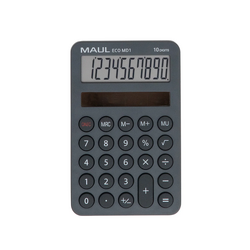 Calculator de buzunar Maul ECO MD1, 10 digits, realizat din plastic reciclat, incarcare solara- gri