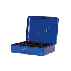 - Fabricata din otel rezistent, caseta ofera durabilitate si protectie impotriva uzurii zilnice. Finisajul albastru elegant si discret se potriveste in orice mediu profesional sau casnic. Este echipata cu un sistem de inchidere cu cheie pentru securitate sporita si vine cu o tavita interioara detasabila pentru organizarea monedelor si bancnotelor.