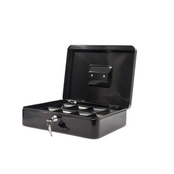 - Fabricata din otel rezistent, caseta ofera durabilitate si protectie impotriva uzurii zilnice. Finisajul negru elegant si discret se potriveste in orice mediu profesional sau casnic. Este echipata cu un sistem de inchidere cu cheie pentru securitate sporita si vine cu o tavita interioara detasabila pentru organizarea monedelor si bancnotelor.