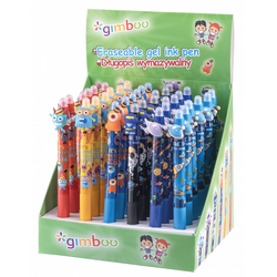 - Display cu pixuri GIMBOO cu cerneala termosensibila, care se sterge usor cu guma speciala integrata.