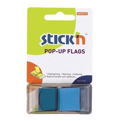 Film index autoadeziv 45 x 25mm, 50 file/set, cu dispenser, Stick"n Pop-up - albastru