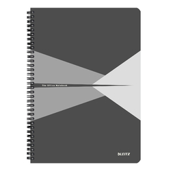 Caiet de birou LEITZ Office, carton laminat, FSC, reciclabil, A4, 90 coli, cu spira, dictando, gri
