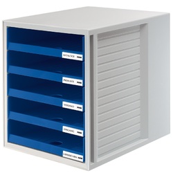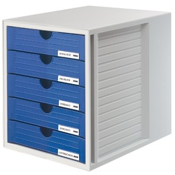 Suport plastic cu 5 sertare pentru documente, HAN - gri deschis - sertare albastre