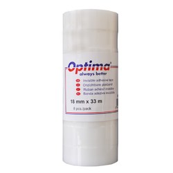 Banda adeziva 18mm x 33 m, 50 microni, Optima - mata, invizibila la copiere - se rupe usor, cu mana