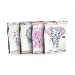 Caiet cu spirala, OXFORD Boho Spirit, A5, 60 file-90gsm, Scribzee, coperta carton elephant-dictando