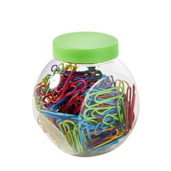 GroupDescription: #Agrafe din metal invelite in vinil colorat. #Culori neon asortate. #Ambalate in cutie rotunda cu capac colorat.