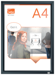 - Suportul de afisare prezinta o rama eleganta cu cleme cu profil redus, colturi taiate cu precizie fara sudura si un mecanism inovator pentru inlocuirea continutului. Pur si simplu, scoateti rama de afisare frontala, schimbati continutul din spatele capacului transparent si reinstalati rama de afisare cu ajutorul conexiunii "push click fit". Aceasta solutie de afisare stabila si securizata include un panou posterior fixat ferm pe perete prin montajul in colturi, permitand inlocuirea continutului fara a scoate cadrul de pe perete. Designul sau inovator modernizeaza o abordare traditionala a afisarii, facand procesul de inlocuire a documentelor rapid si simplu. Dimensiunea zonei de afisare este A3.