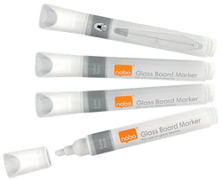 Marker NOBO, pentru table si flipcharturi din sticla, varf rotund 3 mm, standard, 4 buc/cutie, alb