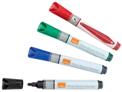 Marker NOBO, pentru table si flipcharturi din sticla, varf 3 mm, 4 buc/cutie, diverse culori
