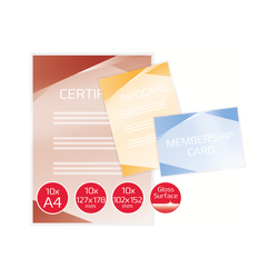 - O gama de dimensiuni si gramaje de laminat special concepute pentru o serie de aplicatii, inclusiv carduri de vizitatori, permise de conducere si materiale publicitare.