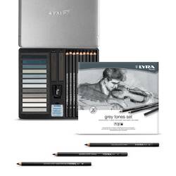 Creioane + accesorii, LYRA Rembrandt, pentru desene si schite, 25piese/cutie metalica-tonuri de gri