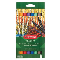 Carioci DERWENT Academy, cu 2 capete, varf tip pensula si ascutit, 8buc/set, diverse culori