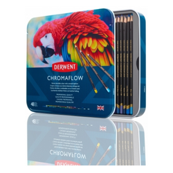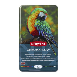 Creioane colorate Derwent Professional Chromaflow, cutie metalica, 12 buc/set