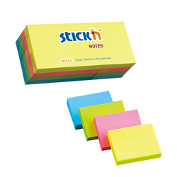 Notes autoadeziv 76 x 127 mm, hartie reciclata, 100 file, 12 buc/cutie, Stick"n – 4 culori pastel