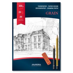 Bloc desen A4, 20 file - 200gsm, AURORA Grain - carton alb