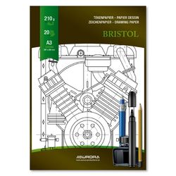 Bloc desen A3, 20 file - 210gsm, pentru schite creion/marker, AURORA Bristol - carton alb