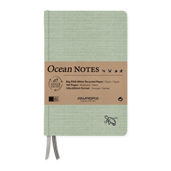 Caiet A5, 192 file - hartie reciclata 80gsm, coperta panza verde, AURORA Ocean - dictando