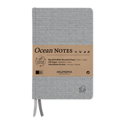 Caiet A5, 192 file - hartie reciclata 80gsm, coperta panza gri, AURORA Ocean - dictando