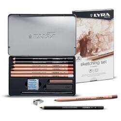 Creioane + accesorii, LYRA Rembrandt Sketching, pentru desene si schite, 11 piese/cutie metalica *
