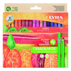 GroupDescription: # Lyra Graduate ART-TIP este noul marker pen bio, fabricat in Italia.# Marker-urile ART-TIP sunt realizate din 64% plastic bio-bazat din trestie de zahar (corpul, dopul si capacul pentru partea colorata), conform standardului ASTM D6888.# Plasticul bio-bazat din trestie de zahar (Green Polyethylene) este o resursa regenerabila care contribuie la reducerea emisiilor de gaze cu efect de sera de CO2. # Cu cerneala pe baza de apa, fara miros, marker-urile ART-TIP sunt ideale pentru toate tehnicile de colorare, hand lettering, bullet journaling si desen manga. # Acestea au o scriere moale, precisa, care se poate amesteca, si un varf de fibra de calitate, rezistent si neted. # Sunt perfecte pentru elevi, artisti amatori si pasionati de desen.