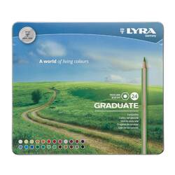 Creioane colorate LYRA Graduate Graphite, 24 culori/cutie metalica *